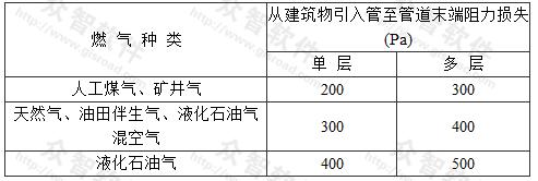 2 當(dāng)由樓幢調(diào)壓箱供應(yīng)低壓燃?xì)鈺r(shí),室內(nèi)低壓燃?xì)夤艿涝试S的阻力損失,也可按本規(guī)范第6.2.8條計(jì)算確定。