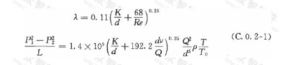 注:除附錄C所列公式外,其他計(jì)算燃?xì)夤艿滥Σ磷枇ο禂?shù)(λ)的公式,當(dāng)其計(jì)算結(jié)果接近本規(guī)范式(6.2.6-2)時(shí),也可采用