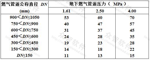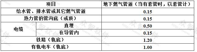 表6.7.5地下燃氣管道與交流電力線接地體的凈距(m)