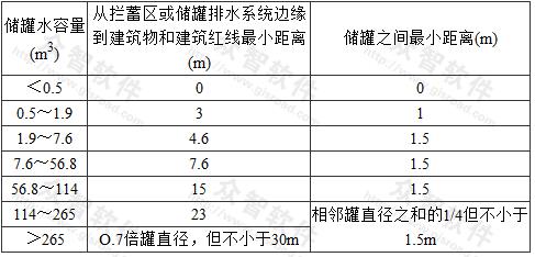 表51攔蓄區(qū)到建筑物和建筑紅線的間距