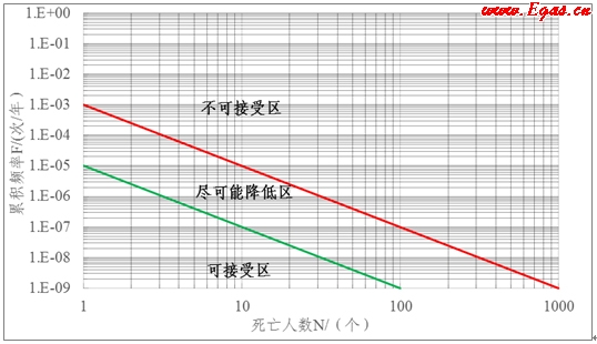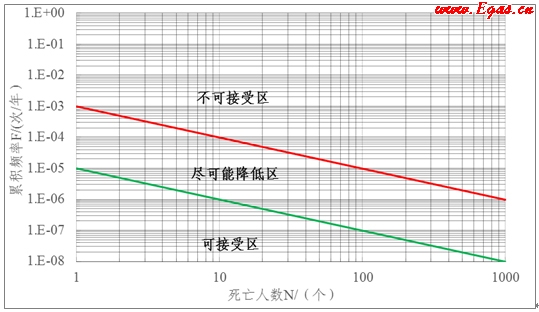 綜合考慮,我國采用香港地區(qū)的社會可接受風險標準值,作為個人可接受風險標準的補充對危險源造成群死群傷事故風險的可接受程度進行評估。