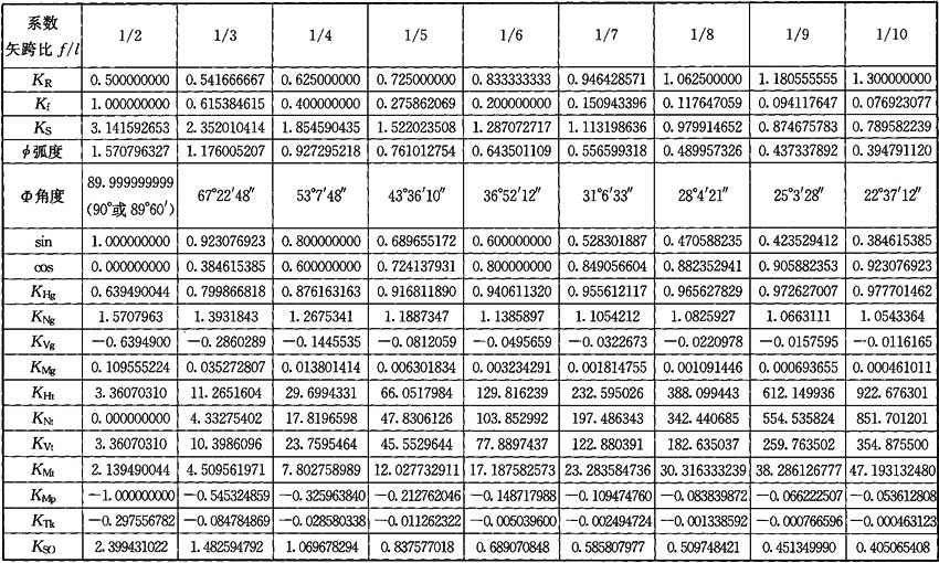 表C.0.1 拱形管道計(jì)算系數(shù)
