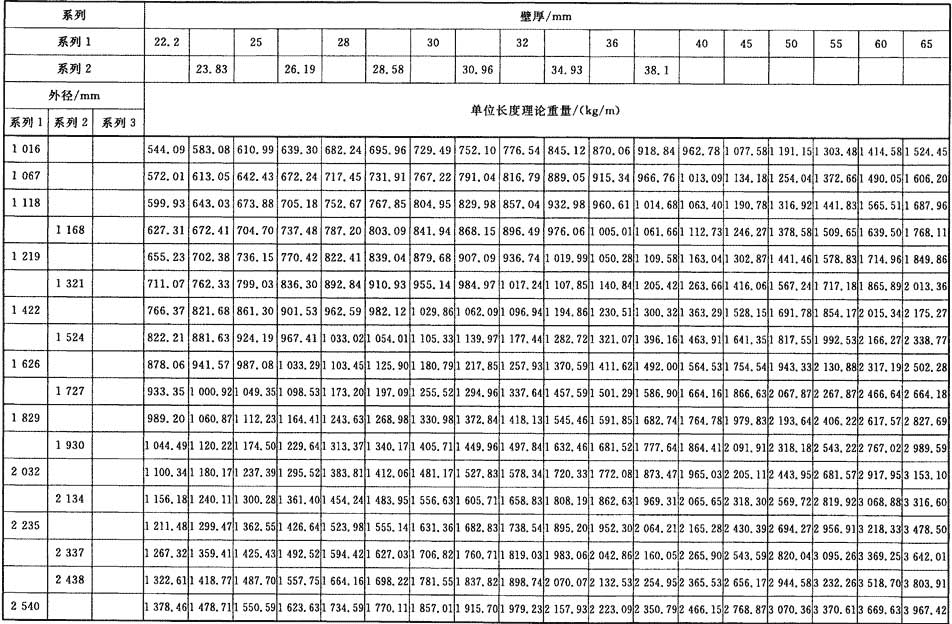 普通焊接鋼管和精密焊接鋼管單位長(zhǎng)度理論重量按式(1)計(jì)算(鋼的密度取7.85kg/dm3),其計(jì)算值分別列于表1和表2。