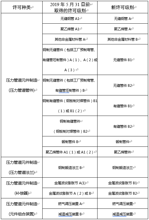 14.進(jìn)口壓力管道元件許可。根據(jù)前期試點(diǎn)情況,自2022年6月1日起,進(jìn)口壓力管道管子(A、B)、壓力管道閥門(A1、A2、B)的制造單位應(yīng)當(dāng)取得《中華人民共和國特種設(shè)備生產(chǎn)許可證》,并按相關(guān)安全技術(shù)規(guī)范要求通過型式試驗(yàn)和制造監(jiān)督檢驗(yàn)(或者進(jìn)口安全性能監(jiān)督檢驗(yàn)),過渡期至2024年5月31日。