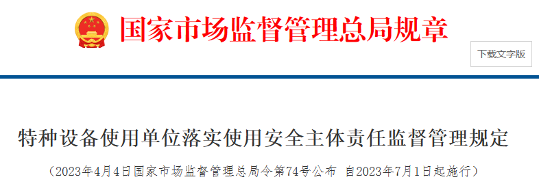 特種設(shè)備使用單位落實(shí)質(zhì)量安全主體責(zé)任監(jiān)督管理規(guī)定