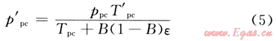 Wichert & Aziz提出了對(duì)含硫化氫和二氧化碳的酸性天然氣修正方法。所以運(yùn)用以上方法計(jì)算酸性天然氣的臨界參數(shù),需對(duì)結(jié)果進(jìn)行修正。具體修正形式如下: