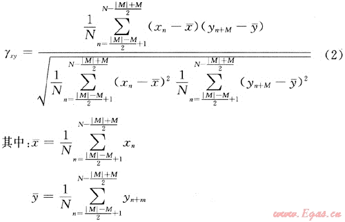 M是Yn相對于Xn的深度差(采樣點數差),式(2)在M<<N時適用。以M為變量,在適當的搜索窗長內變化,則當M正好為yn相對于xn的實際深度差時,計算得到的γxy應為最大。以此反推,在搜索窗長范圍內,當計算的相關系數最大時,M即為yn相對于xn的實際深度差(采樣點數差)。