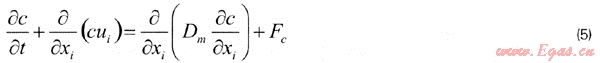 在擴(kuò)散方程中,特性量是氣體的組分濃度c: