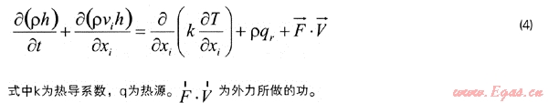 如果特性量是熱焓(能量),即Φ=h,則可得到能量方程: