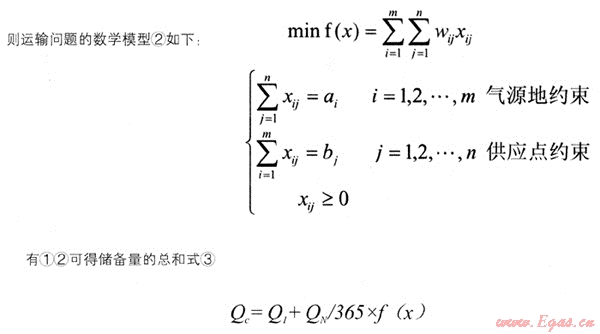 其次,確定上游氣源到目的地的最小運輸耗時。由于長輸管道因某種外部因素(地震,泥石流等)破壞導(dǎo)致無法輸配燃氣,必須依靠其他途徑運輸至城市內(nèi)部(水運,陸運等)??梢酝ㄟ^建立線性規(guī)劃方程算出在滿足供氣量等于用氣量的情況下,從各氣源地運輸至城市供應(yīng)點的最少必要時間。