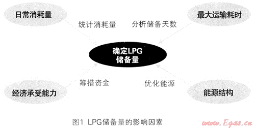 最后也必須統(tǒng)籌考慮城市的能源結(jié)構(gòu)、經(jīng)濟承受能力。不能讓LPG儲備成為其他新能源建設(shè)和經(jīng)濟發(fā)展的阻礙與負擔(dān)。圖1顯示LPG儲備量的影響因素