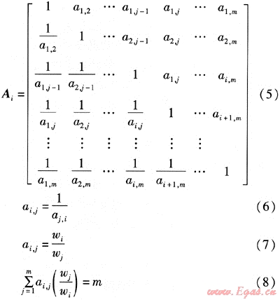 式中λmax,i——成對比較矩陣Ai的最大特征值