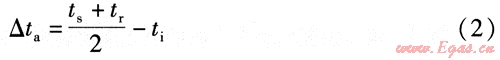 由于對(duì)數(shù)平均傳熱溫差計(jì)算比較復(fù)雜,不適合工程中的簡(jiǎn)便計(jì)算,因此工程中普遍采用簡(jiǎn)便的算術(shù)平均傳熱溫差[7],并得到國(guó)內(nèi)外對(duì)流散熱器測(cè)試標(biāo)準(zhǔn)的采用[8、9]。算術(shù)平均傳熱溫差△ta的計(jì)算式為:
