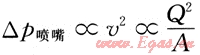 (式中v為速度;p為壓力;ρ為液體密度;C為常數(shù)),得到噴嘴壓力降