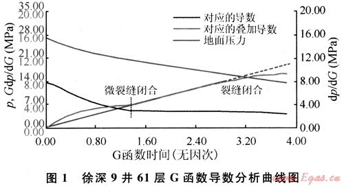 當(dāng)導(dǎo)數(shù)為常數(shù)并且該疊加導(dǎo)數(shù)曲線位于一條通過原點的直線上時,為標(biāo)準(zhǔn)濾失;如果在閉合點前疊加導(dǎo)數(shù)曲線顯示“上凸”,則表明儲層天然裂縫發(fā)育。疊加導(dǎo)數(shù)曲線與直線會合時被認(rèn)定為是裂縫的張開壓力。當(dāng)該疊加導(dǎo)數(shù)曲線從直線向下偏離時為裂縫閉合(圖1)。
