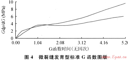 其特征主要表現(xiàn)為主裂縫閉合前G函數(shù)曲線為接近水平直線(圖3),裂縫濾失恒定,但由于該類儲層基質(zhì)致密,物性條件較差,濾失量較小,G函數(shù)數(shù)值一般小于2。