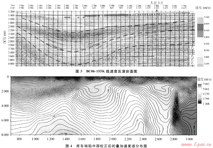 庫車坳陷中部油氣資源豐富,勘探前景十分廣闊。目前庫車坳陷油氣勘探瓶頸在于圈閉落實(shí)程度較低,難以選擇有利的鉆探目標(biāo)。雖然目前圈閉顯示較多,但由于受地震資料品質(zhì)差和速度研究難度大的限制,圈閉落實(shí)面臨很大困難。分析近年來勘探失利的井,以圈閉不落實(shí)居多,據(jù)統(tǒng)計(jì)大約80%都是因?yàn)槿﹂]不落實(shí)。究其原因除構(gòu)造模式認(rèn)識(shí)有誤之外,速度場建立不合理是最重要的因素。如何精細(xì)建立平面及縱向上的速度場,對(duì)于正確的時(shí)深轉(zhuǎn)換及圈閉評(píng)價(jià)具有重要的意義。