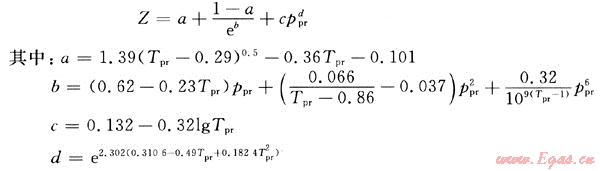 式中:ppr為擬對(duì)比壓力,MPa,ppr=p/ppr;Tpr為擬對(duì)比溫度,K,Tpr=T/Tpr;ppr為天然氣的擬臨界壓力,MPa,ppr=∑yipci;Tpc為天然氣的擬臨界溫度,K,Tpr=∑yiTci;pci為組分i的臨界壓力,MPa;Tci為組分i的臨界溫度,K;yi為天然氣中組分i的摩爾分?jǐn)?shù)。