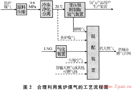 許多城市的煉焦企業(yè)都附屬在鋼鐵企業(yè)內(nèi),而且鄰近城市天然氣管網(wǎng)。如果煉焦企業(yè)、氫氣產(chǎn)品用戶與燃?xì)馄髽I(yè)能夠攜手聯(lián)合,三位一體,充分利用城市天然氣管網(wǎng)容量大的獨特優(yōu)勢,將焦?fàn)t煤氣制氫過程中的所有解析氣乃至整個煉焦(鋼鐵)企業(yè)所有可燃?xì)怏w調(diào)制成合格的代天然氣產(chǎn)品供應(yīng)管網(wǎng),那么,就可以達(dá)到焦?fàn)t煤氣各組分各盡其用、合作方共贏的目的。