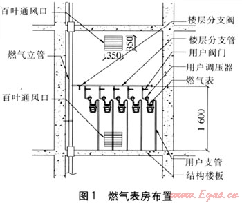 高層住宅樓宇的設(shè)計(jì)中,住宅標(biāo)準(zhǔn)層均設(shè)有諸如水表房、電表房、燃?xì)獗矸?、消防設(shè)備房、垃圾房等樓宇設(shè)備房間,同一樓層住戶(hù)的燃?xì)獗砭图邪惭b在該樓層的燃?xì)獗矸績(jī)?nèi)。