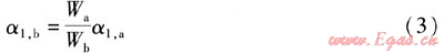 成正比這個(gè)論斷比較武斷,文中沒(méi)有給出詳細(xì)的公式推導(dǎo)。根據(jù)式(1)可知,如果某燃具原用燃?xì)鈇,一次空氣系數(shù)為α1,a。換成燃?xì)鈈時(shí)該燃具的一次空氣系數(shù)為: