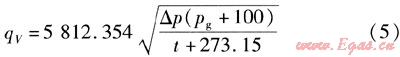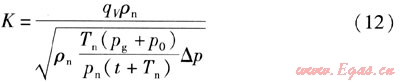將數據qV=3000m3/h,ρn=1.293kg/m3,L=273.15K,pg=5kPa,p0=100kPa,pn=101.32kPa,t=20℃,△p=0.74377kPa代入式(12),可求得:K=4025.3021。