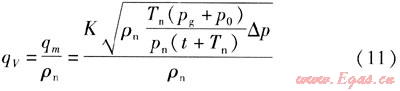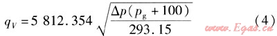 將溫度(20℃)換算成熱力學溫度(293.15K)代入式(3),流量公式為: