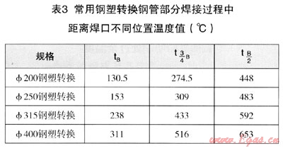 2 鋼塑轉(zhuǎn)換焊接過程中焊口處溫度確定