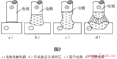 2.2 接觸短路引弧法引燃焊接電弧的過程