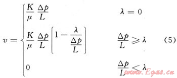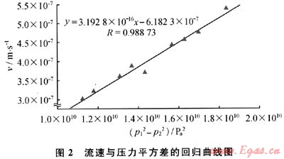 可以看出,v與p12-p22為通過原點的線性關(guān)系。當存在啟動壓力梯度時應(yīng)該為: