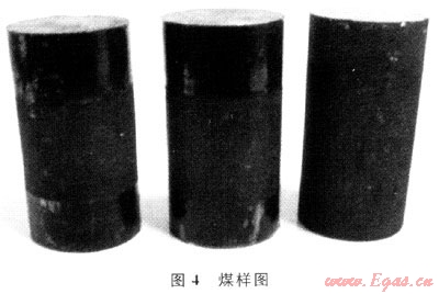 實(shí)驗(yàn)煤樣取自陽(yáng)泉固莊煤礦,其煤層位于山西沁水煤田。在井下人工采集未受擾動(dòng)的典型地質(zhì)單元的煤體,運(yùn)到地面后進(jìn)行蠟封、裝箱,在煤炭科學(xué)研究總院加工成Φ50×100mm的試件(圖4)。