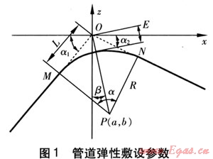 在燃氣管道施工圖設計中,在平面和立面經(jīng)常采用彈性敷設的方式。本文僅介紹燃氣管道縱向施工圖設計中彈性敷設參數(shù)的計算。