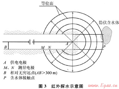 HY-303紅外探水儀,能探測20~30m范圍內(nèi)的地下水狀況。基本原理:當掘進前方30m范圍內(nèi)存在含水構造或溶洞時,前方災害源產(chǎn)生的紅外異常場,必然會傳播到掘進后方,因而在掘進后方隧道的側壁上能提前發(fā)現(xiàn)災害源產(chǎn)生的紅外異常場。其特點為:①距離短,一般為35m;②只定性告知35m范圍內(nèi)有無水,至于水壓、水量、具體哪個里程則探測不出;③適用于任何地層中定性判斷探測點前方“有沒有水”及水體存在方位;④儀器小巧輕便,操作簡單,可實現(xiàn)全空間全方位探測;⑤資料分析簡潔、快速、直觀;⑥基本不占用隧道施工時間。