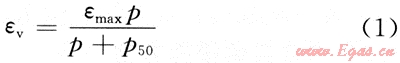式中:εv為壓力p下吸附的體積應(yīng)變;εmax與朗格繆爾方程中朗格繆爾體積數(shù)據(jù)表達的含義相當(dāng),代表理論最大應(yīng)變量,即無限壓力下的漸近值;p50與朗格繆爾壓力數(shù)據(jù)表達的含義相當(dāng),代表煤樣達到最大應(yīng)變量的1/2時的壓力。