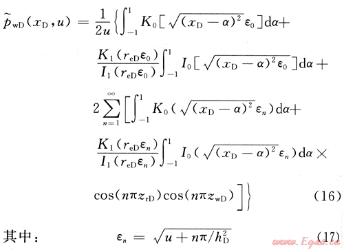 1) 在圓形封閉氣藏水平井不穩(wěn)態(tài)流數(shù)學(xué)模型的基礎(chǔ)上,利用積分變換和反演算法,得到了模型的Laplace空間解。
