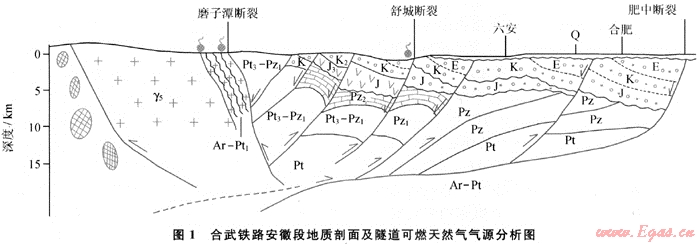 關鍵詞:大別造山帶;鐵路隧道;天然氣;海相沉積;烴源巖;推覆體;勘探重點;合肥盆地