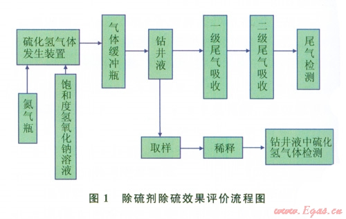 硫化氫屬劇毒氣體,當空氣中濃度超過1 000mg/m3時,可引起急性中毒,造成人員傷亡事故[1-3]。鉆井中,硫化氫氣侵首先會對鉆井液產(chǎn)生嚴重污染,導(dǎo)致鉆井液的流變性能變差,如影響攜帶巖屑、井壁穩(wěn)定、造成起下鉆壓力激動等,增加鉆井成本;其次會對金屬產(chǎn)生氫脆破壞:造成井下管柱的突然斷落、井口裝置失效、地面管匯和儀表的爆裂,引發(fā)井噴失控或著火事故。因此,在鉆井過程中遇到H2S氣侵時,能否及時清除鉆井液中的H2S氣體至關(guān)重要。國內(nèi)外現(xiàn)場鉆井過程中針對硫化氫氣侵采取的主要措施之一就是在鉆井液中加入除硫劑,使硫化氫氣體被氧化或與金屬離子生成沉淀,即將活性硫轉(zhuǎn)換成非活性硫。而現(xiàn)有室內(nèi)評價鉆井液硫化氫吸收劑除硫效果與現(xiàn)場使用效果差異較大。因此研究一種更加接近現(xiàn)場使用效果的室內(nèi)除硫劑除硫效果評價方法具有現(xiàn)實意義。
