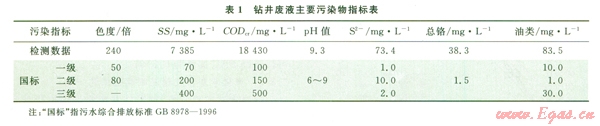 從表l中看出,鉆井廢液主要污染指標(biāo)均嚴(yán)重超標(biāo),必須經(jīng)過有效處理后才能排放。