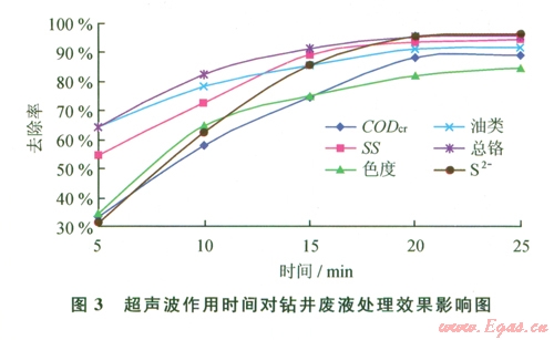 2.3.3 超聲波作用時間對鉆井廢液處理效果的影響