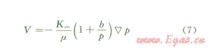 式(7)~(8)中V表示氣體滲流速度,m/s;K∞表示Klinkenberg滲透率,mD;μ表示氣體黏度,Pa·s;b表示與巖石結(jié)構(gòu)及氣體分子平均自由程相關(guān)的系數(shù),亦稱Klinkenberg系數(shù),MPa;ρ表示密度,kg/m3;β表示Forchheimer系數(shù),m-1。