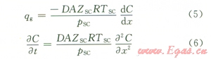 式(5)~(6)中qg表示擴(kuò)散流量,m3/s;D表示擴(kuò)散系數(shù),m2/s;A表示面積,m2;ZSC表示標(biāo)準(zhǔn)狀況下氣體壓縮因子,無量綱單位;R表示通用氣體常數(shù);TSC表示標(biāo)準(zhǔn)溫度,℃;pSC表示標(biāo)準(zhǔn)壓力,MPa;C表示摩爾濃度,kg/m3;t表示時(shí)間,s。