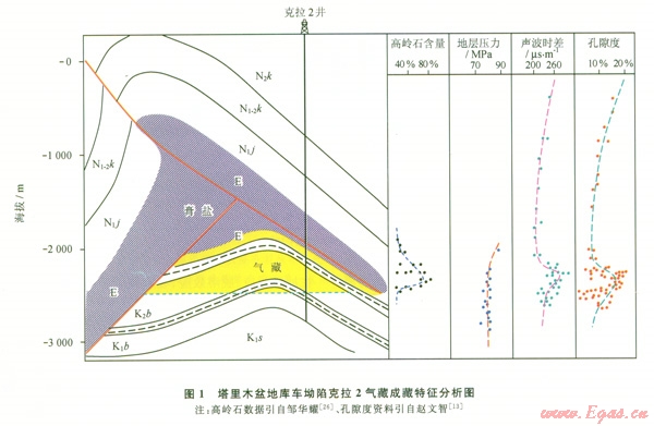 抽吸效應(yīng)的地質(zhì)表現(xiàn)主要包括:氣藏高壓-超高壓(局部氣層壓力與深層相近)、儲(chǔ)層孔隙度增大、天然氣干而丙烷含量稀少、碳同位素值變重、氣藏內(nèi)砂巖儲(chǔ)層高嶺石含量高等特征。如克拉2大氣田的天然氣儲(chǔ)量超過(guò)2 000×