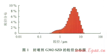 由圖l可以看出,封堵劑G302-SZD的最大粒徑在13μm,主要粒徑分布在2~5μm,根據“?~2/