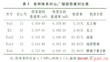 從表3中實驗數據可以看出,對比的幾種常用鉆井液完井液體系中,無土相低傷害暫堵鉆井液完井液體系的靜態(tài)傷害率最小,小于10%,屬于較輕度傷害。