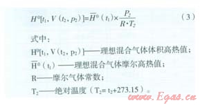對于給定摩爾組分的理想燃?xì)饨M分,在燃燒溫度tl和壓力pl、計量溫度t2和壓力p2時的理想體積高熱值計算公式如下: