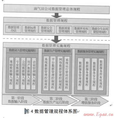 數(shù)據(jù)標準是系統(tǒng)建設(shè)的依據(jù),按照統(tǒng)一的數(shù)據(jù)標準進行系統(tǒng)建設(shè)是保證數(shù)據(jù)準確性和一致性的基礎(chǔ)。在數(shù)據(jù)管理方面,油氣田公司需制訂以下企業(yè)內(nèi)部標準:①企業(yè)數(shù)據(jù)模型,描述企業(yè)勘探開發(fā)所有核心數(shù)據(jù)及其相互關(guān)系的統(tǒng)一全局視圖,是所有系統(tǒng)建設(shè)必須遵守的重要依據(jù);②數(shù)據(jù)編碼,其體現(xiàn)在企業(yè)業(yè)務(wù)流程的各個環(huán)節(jié),它定義了企業(yè)所有管理對象的唯一編碼,目的是實現(xiàn)企業(yè)業(yè)務(wù)流程的標準化;③企業(yè)數(shù)據(jù)指標體系,統(tǒng)一企業(yè)數(shù)據(jù)的指標解釋,規(guī)范企業(yè)經(jīng)營決策分析應用,保證數(shù)據(jù)的唯一性和準確性。