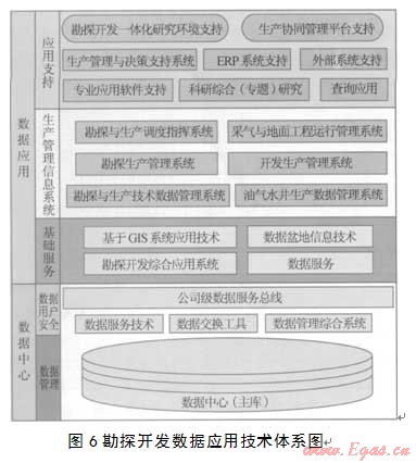 數(shù)據(jù)應用技術(shù)體系建設(shè)是建立在油氣田公司統(tǒng)一數(shù)據(jù)庫之上,通過不同的數(shù)據(jù)服務(wù)方式和數(shù)據(jù)交換工具以及公司級數(shù)據(jù)服務(wù)總線,其目的是實現(xiàn)數(shù)據(jù)基礎(chǔ)服務(wù)、生產(chǎn)管理信息系統(tǒng)、應用支持3個層次數(shù)據(jù)應用。
