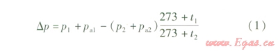 根據(jù)《規(guī)范》的規(guī)定,埋地燃氣管道嚴密性試驗在強度試驗合格、管道全線回填后進行,嚴密性試驗穩(wěn)壓的持續(xù)時間為24 h,修正壓力降小于l33 Pa為合格。修正壓力降應(yīng)按式(1)計算: