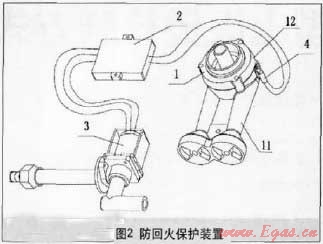 通過以上所述的排除方法,能在一定程度上減少回火的發(fā)生,但是,以上某些回火現(xiàn)象的排除,不但需要使用者具有較敏銳的觀察能力,而且同時需要使用者具備一定的專業(yè)知識,一旦使用條件變化,氣源成分或燃氣壓力的波動超過灶具的適應范圍,回火還是會發(fā)生,調(diào)整卻很困難。因此,在使用220V交流電的氣電結合灶具和集成灶越來越廣泛的今天,為確保用戶使用安全,開發(fā)具有能主動探測回火,自動切斷氣源,具備主動防回火裝置的安全型燃氣灶具具有積極的意義。