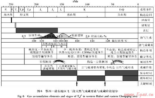 (2)鄂西—渝東地區(qū)飛三段天然氣成藏主要經(jīng)歷了3個階段:早期古巖性油藏聚集階段;古油藏裂解與古巖性氣藏形成階段;天然氣調(diào)整再聚集與現(xiàn)今構(gòu)造—巖性復(fù)合氣藏形成階段。